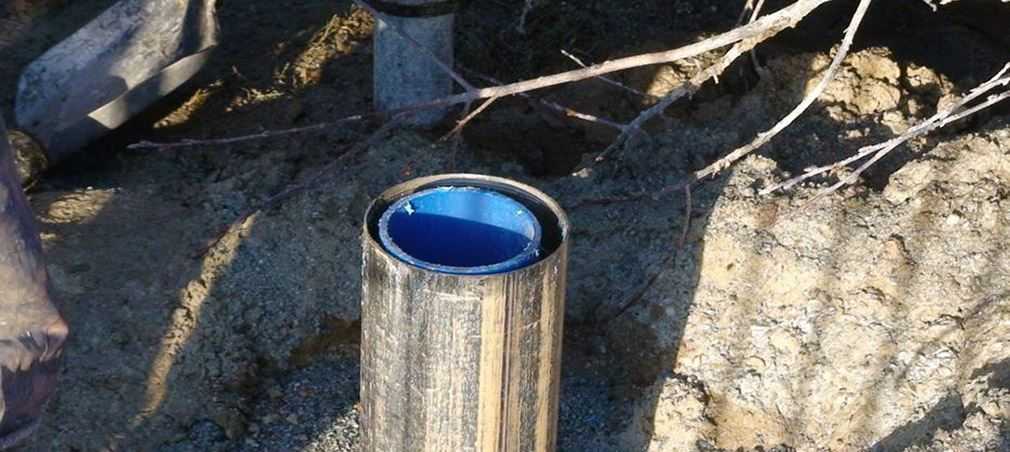 - Шурф обязательно обустраивается обсадной трубой. Она выбирается исходя из слоя почвы: пластиковая или стальная.