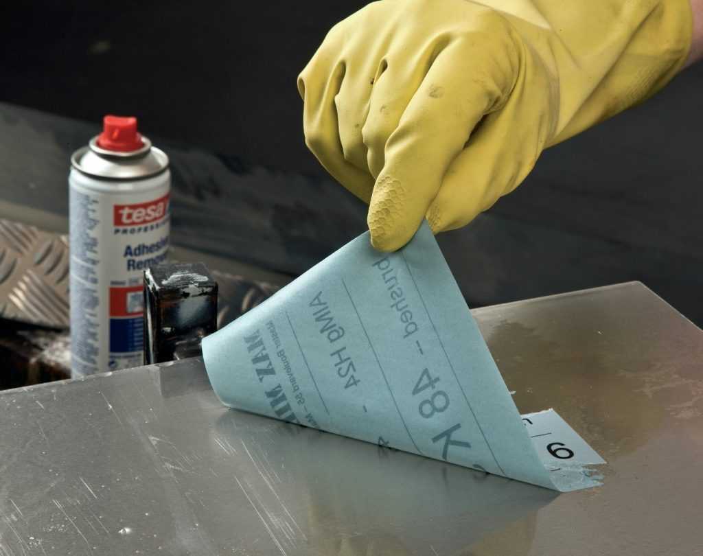 С внутренней стороны полотна удаляются все элементы старой отделки, поверхность доводится до гладкого состояния и обезжиривается уайт-спиритом.