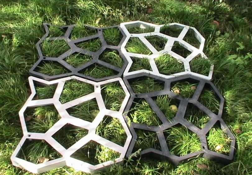- Прочность дорожек, сделанных с помощью таких форм, не вызывает сомнений. Бетон можно залить на любую глубину, например, на 20 см, верхнюю его часть выполнить в виде ячеек, и тогда по тропинке можно будет не просто ходить, но и ездить автомобилем.
