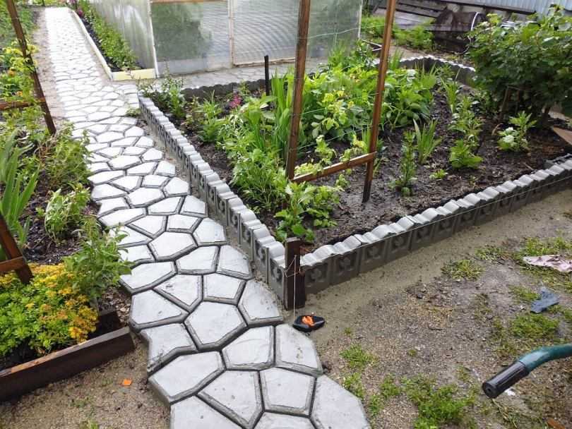 Садовую тропку можно выполнить из любых подручных средств: древесины, дикого или обработанного камня, кирпича, различных искусственных материалов. Относительно дешевым, но вполне практичным и привлекательным вариантом считаются заливные дорожки из бетона. Формы для них можно приобрести на строительном рынке или изготовить самостоятельно. В любом случае, иметь такую форму в своем хозяйстве не помешает ни одному садоводу.