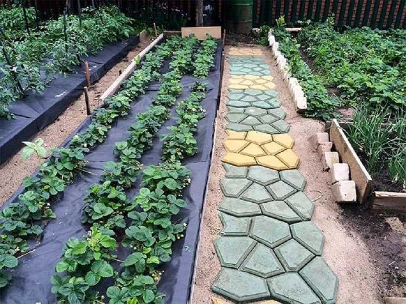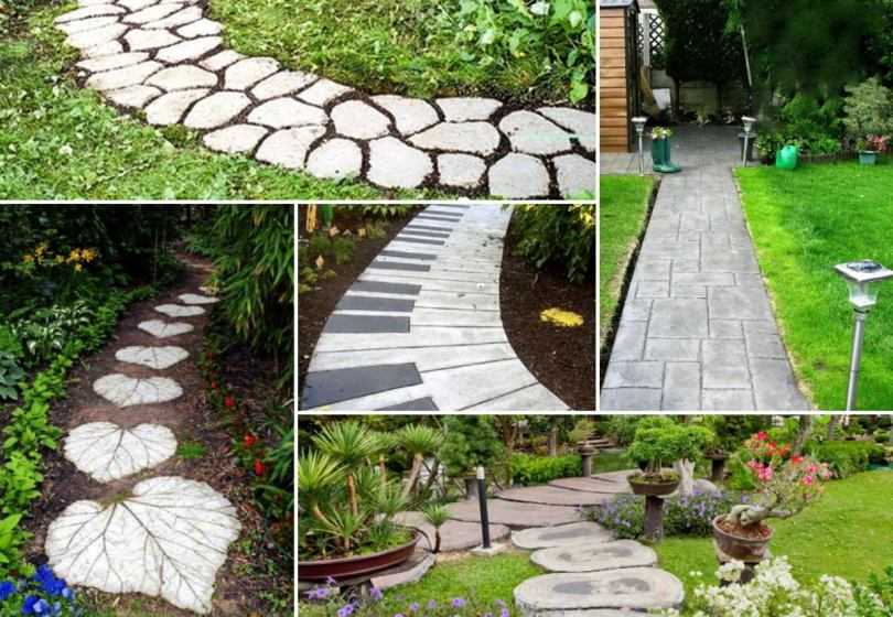 Очень оригинальное решение для обустройства тропинок в саду. Чтобы залить плиты, понадобится специальная форма. Она может быть как простой квадратной, так и сложной фигурной.