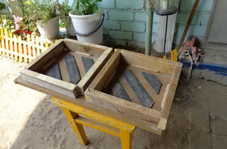 Если пропитать дерево олифой непосредственно перед заливкой, форма будет легко сниматься с застывшего раствора. Снимать рекомендуется через 1-2 дня, а укладывать через неделю.