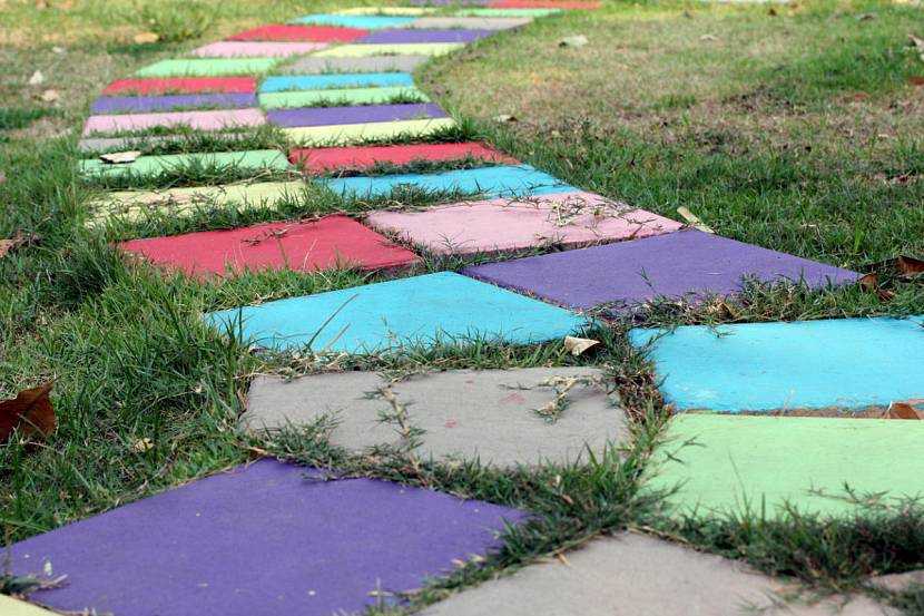 - Напыление, которым покрывают цементно-песчаный состав после его застывания, склонно к истиранию и недолговечно. Тропинка будет выглядеть красиво не так уж долго, а чтоб поддерживать ее в аккуратном виде, краску придется обновлять не реже 1 раза в год. Некоторые решают эту проблему, используя специальные пигменты, которые добавляются в жидкий раствор и окрашивают всю толщу бетона. Нужно отметить, что стоимость таких веществ довольно высока, а итоговый результат получается не таким уж привлекательным.