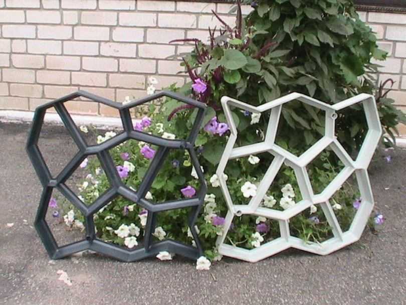 - Форма для заливки садовых дорожек дает возможность быстро и без лишних затрат сделать тропинку с красивым и аккуратным узором.