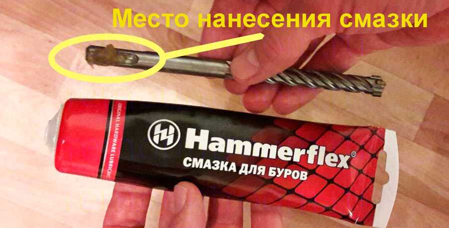 Так что перед введением в эксплуатацию необходимо нанести средство на место, куда устанавливается оснастка. При работе перфоратора именно на этом участке возникает наибольшее трение.