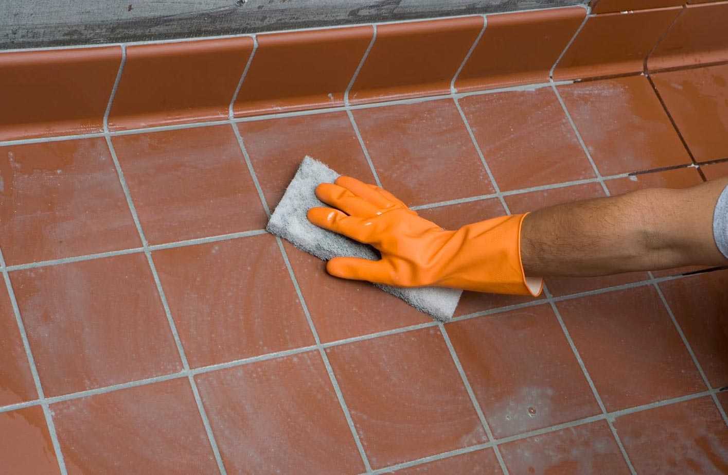 Затем смывают водой с помощью щетки, мочалки или жесткой стороны посудной губки. Главное, чтобы инструмент не поцарапал поверхность плитки.