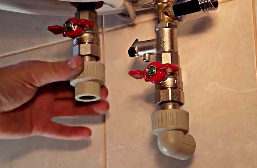 В целях отсекания накопительного прибора от водопровода в паре работают два крана. Соответственно, включенными они являются исключительно во время работы прибора, а их монтаж является необходимым. Кроме того, такие краны важны, когда намечается ремонт агрегата и его необходимо снять.