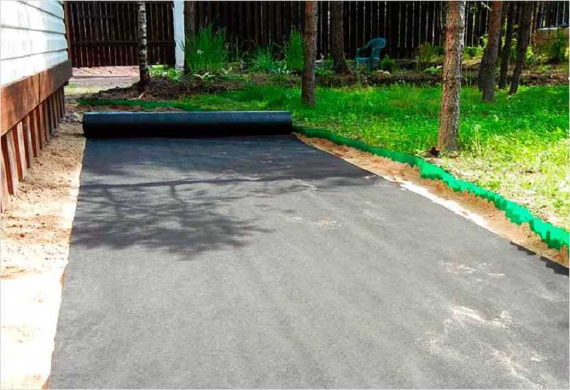 Геотекстиль, уложенный на дно, не допустит прорастания сорняков, смешивания щебня с глиной и песком, выполняет функцию нижней части дренажного пространства, необходимого для отвода воды.