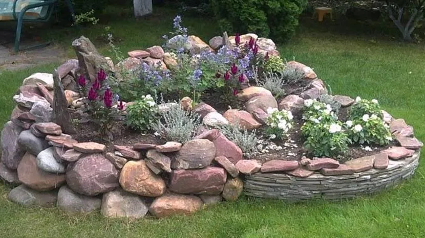 Островок из камня и цветов в саду возле дома Источник nggalaxy.ru