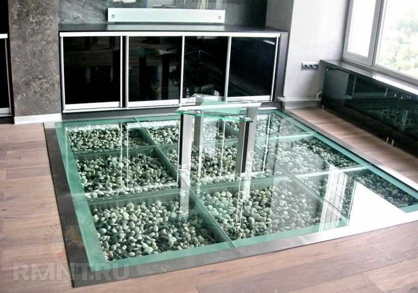 Если вы желаете придать вашему интерьеру оригинальности, то стоит направить внимание на стеклянные полы. Не считая того замена части обычного пола на стекло способна кардинально поменять его внешний облик и уменьшить атмосферу в помещении, в особенности в случае если в нем огромное количество габаритной мебели