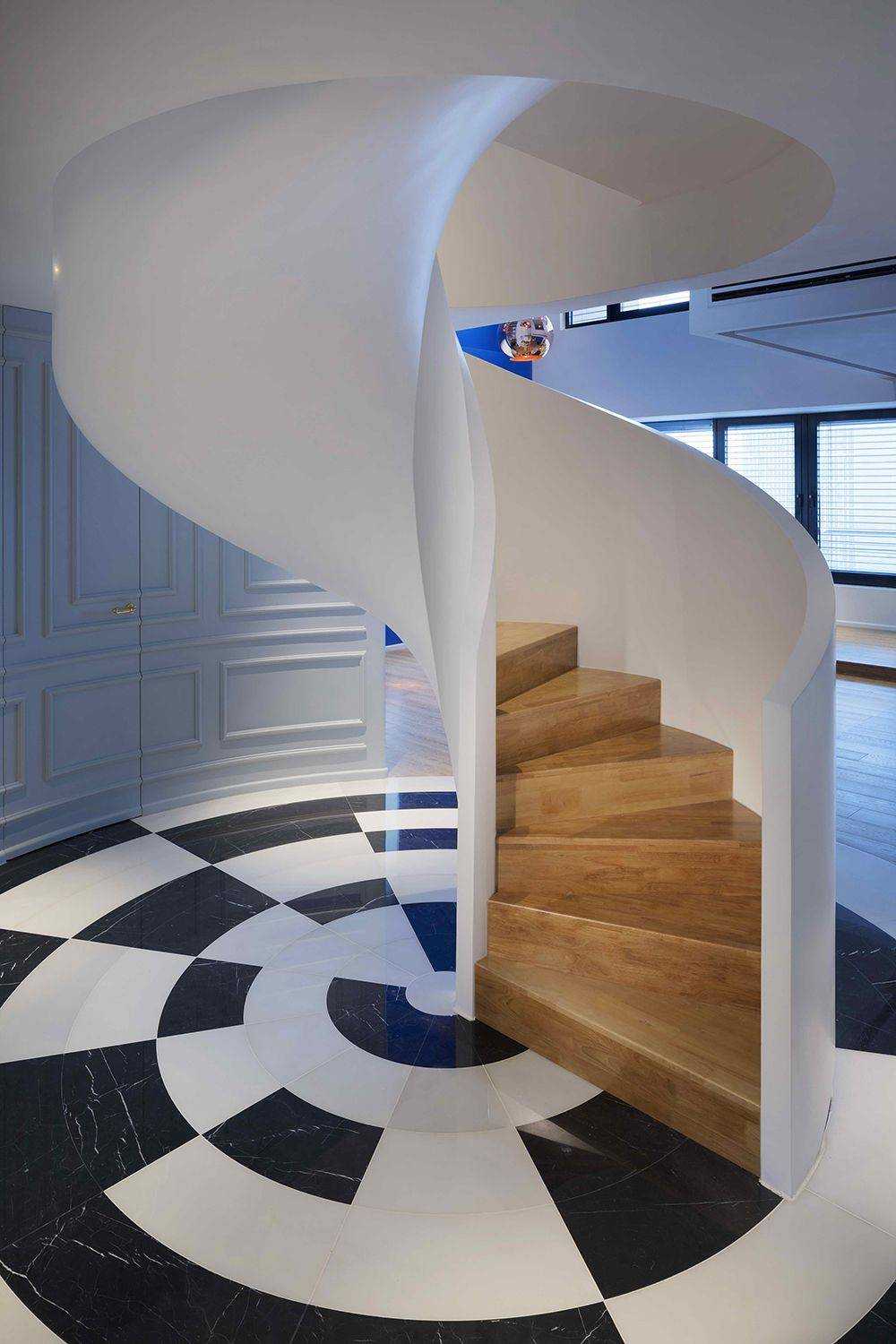 Закрученный подъем в роскошных частных домах зачастую выполняет эстетическую функцию. Возле него эффектно смотрится оригинальная консоль с живыми цветами или растениями. В квартирах такая лестница экономит пространство, а под ней можно организовать дополнительные места хранения.