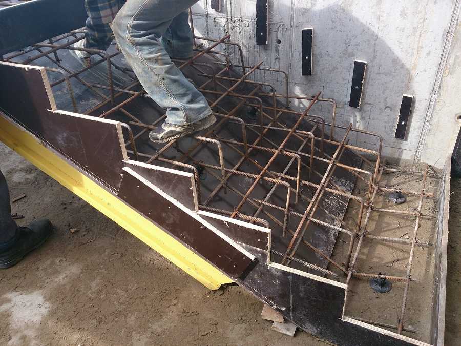 Базовые нагрузки приходятся на арматуру, поэтому ее количество составляет около 2-3% поперечного сечения по всей длине пролета. В основном используют прутья марки СТ-5, которые укладываются вдоль марша с шагом: