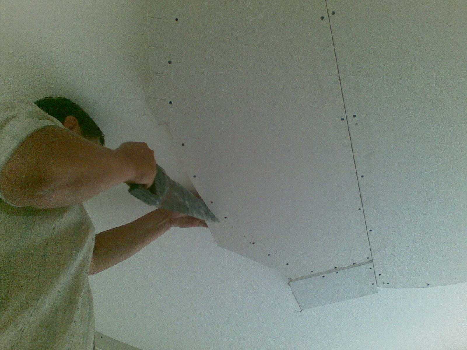 После окончания обшивки остается выполнить качественную окончательную отделку гипсокартонного потолка шпатлевкой, а после этого аккуратно вскрыть его краской.