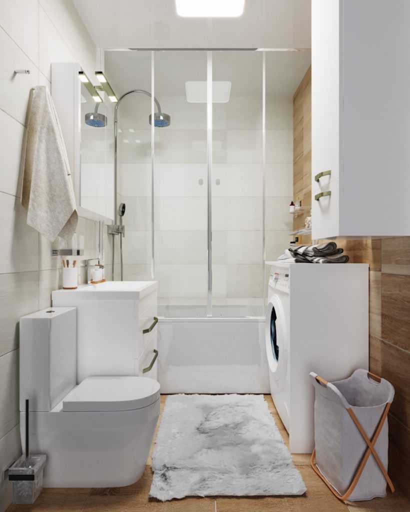 При линейном зонировании зоны предпочтительно располагать в порядке частоты пользования: ближе ко входу умывальник, затем унитаз и ванна. Но это означает усложнение и удорожание работ, так как придется утапливать в пол крестовину и тянуть к унитазу 100-мм трубу.