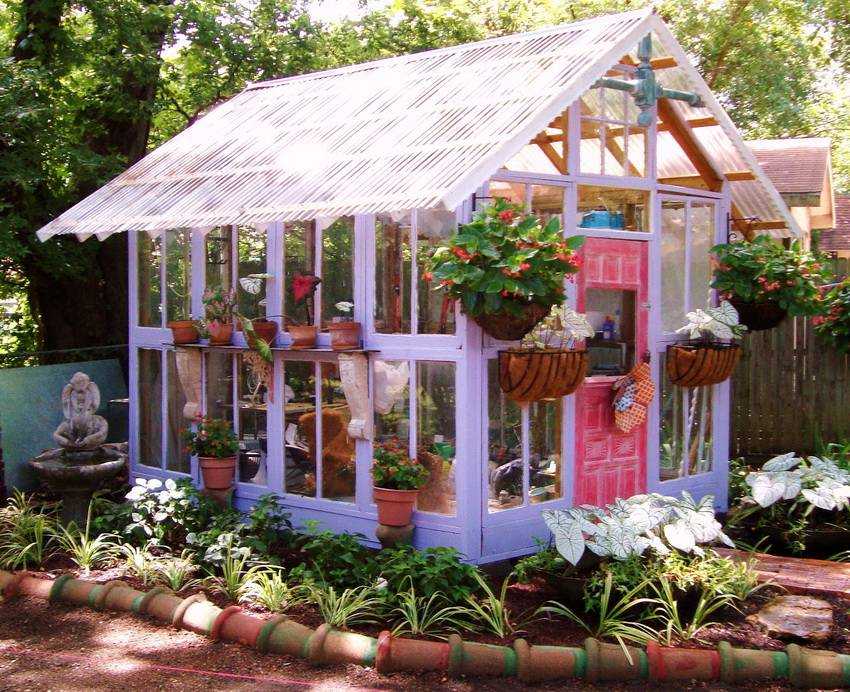 Проявив долю фантазии из подручных материалов можно сделать красивую теплицу