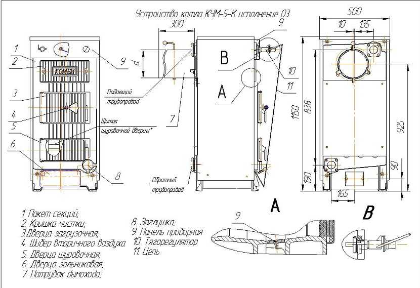 Перед сборкой пиролизного котла необходимо определиться с типом устройства, его конструктивными особенностями и подобрать подходящий типовой проект конструкции.