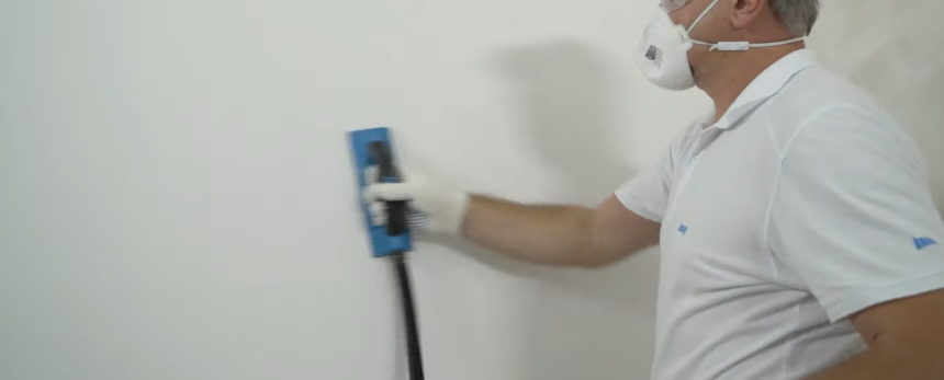 Шлифуйте стену бережно, не переусердствуйте, чтобы не сошкурить всю шпаклёвку.