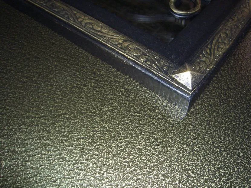 Чтобы достигнуть необходимого оригинального внешнего вида и получить дополнительную долговечность бронированного входного изделия из металла, его окрашивают молотковой краской. Этот вид набирает известность во всем мире. Она имеет широкую палитру цветов с большим количеством оттенков, на долгий срок сохраняет колорит и броскость первой покраски. Главное ее свойство – это специальное предназначение для покрытий из металла.