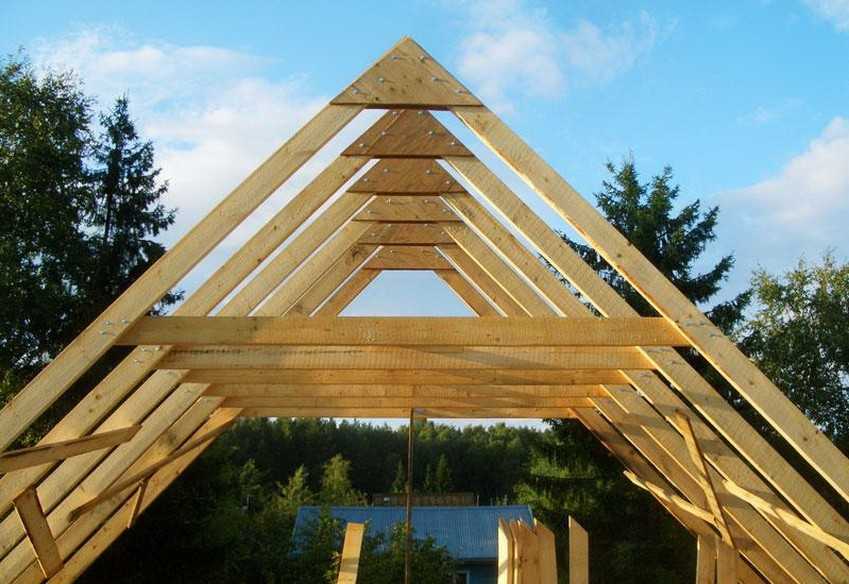 Все стропила должны быть одинаковыми. Крыша не имеет перелома, скоса. Подготовка стропил должна быть произведена по шаблону. Это обычные доски, зафиксированные гвоздями. Всё следует делать аккуратно, не спеша, не допуская ошибок.