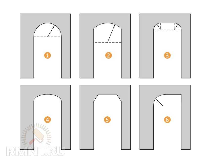 1. Классическая округлая арка. 2. Модерн. 3. Романтика. 4. Эллипс. 5. Трапеция. 6. Полуарка
