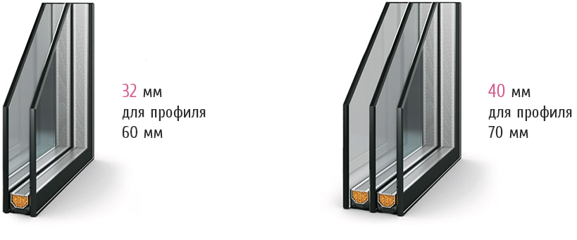 Стеклянный пакет — герметично объединенные листы стекла. Он заполняет створки с минимальным расстоянием от передней плоскости окна 15 мм. Профиль толщиной 50-70 мм лучше выбирать с 18-миллиметровым отступом стеклянного заполнения от края ПВХ.