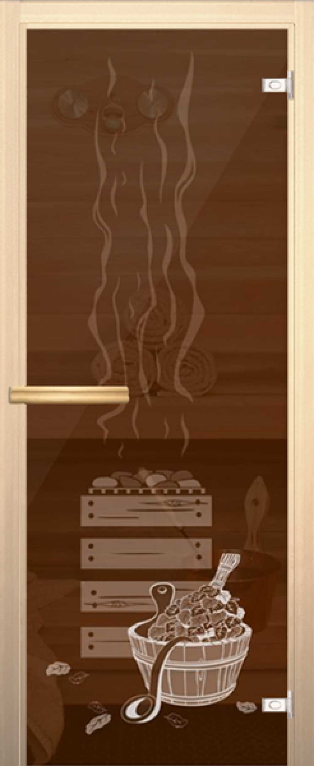 Конечно, внешний вид стеклянных дверей это не только традиционная прозрачность изделия, но и всевозможные вариации тонирования полотна, его матирование, нанесение рисунка. Это отличные варианты для тех, кого полная прозрачность все же смущает. Пескоструйные аппараты, водостойкие краски, специальные пленки – все это визуально украшает и вместе с тем маскирует помещение парной.