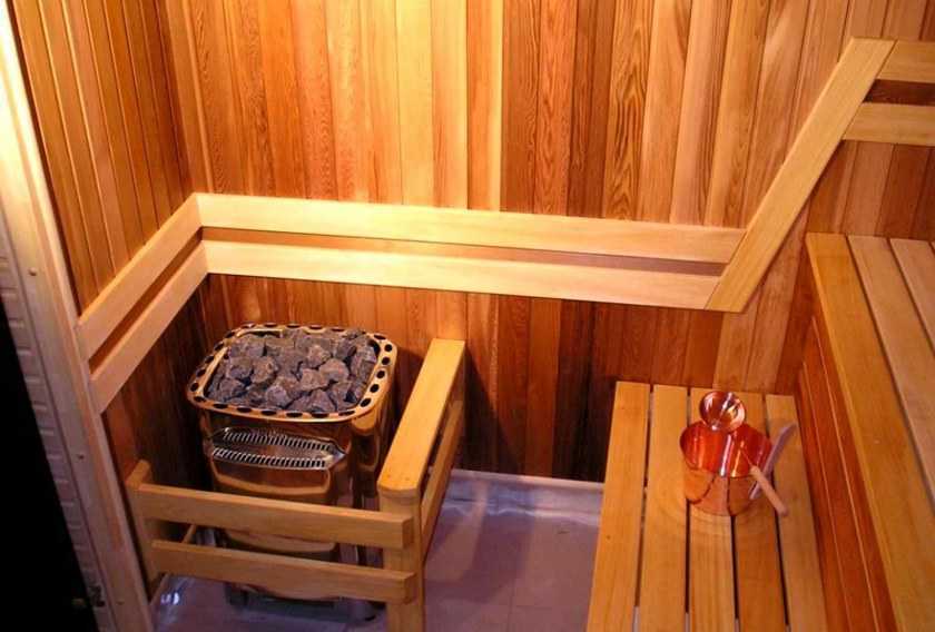 Потолок со стенами обшиваются высушенной абсорбирующей древесиной, не имеющей сучков и не выделяющей смолы при высокой температуре. К наиболее подходящим породам относятся: