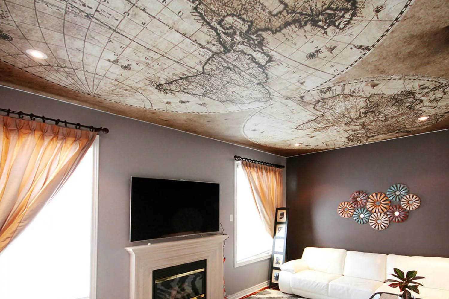 После установки и высыхания потолки можно раскрасить акриловыми красками для придания им еще большей оригинальности и индивидуальности. Кроме того, на полотне можно сделать фотопечать по своему выбору.