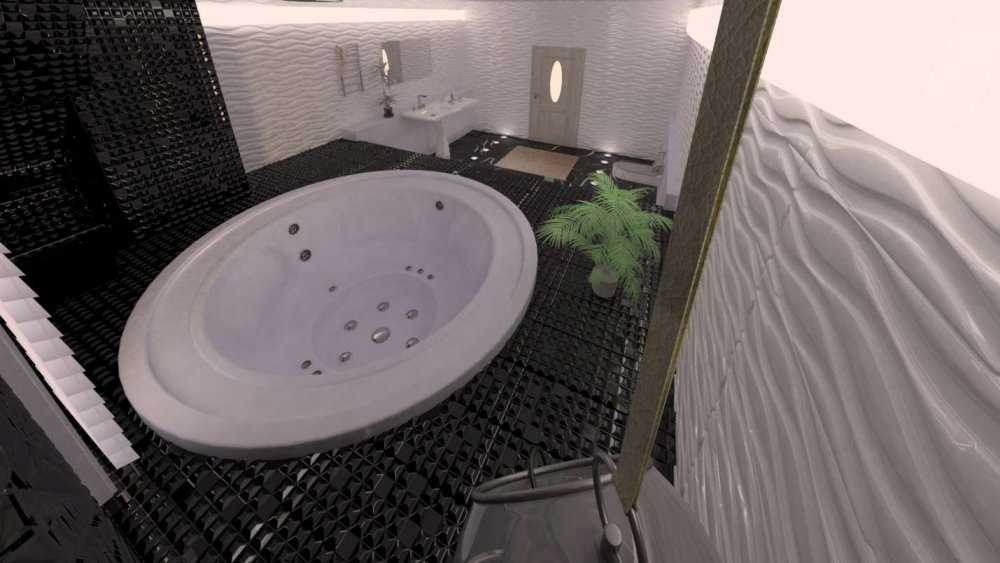 Темой объемного покрытия в ванной чаще всего выступает морская тематика. Уместно смотрятся изображения и элементы декора, связанные с водной стихией и отдыхом. В качестве базового слоя может выступить: