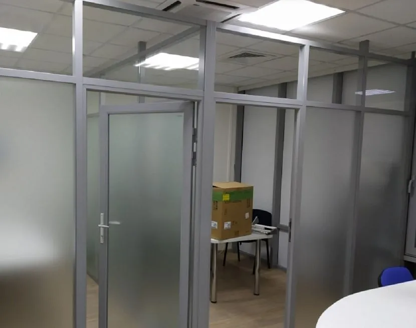 В офисах уместна фрамуга-окно над дверью. Сплошные рамы от пола до потолка выполняют роль перегородок. Чтобы скрыть работников от посторонних глаз, стекло часто тонируют. Верхняя деталь с прозрачными вставками увеличивает поступление света.