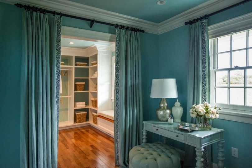 В проходных комнатах установка дверей не всегда уместна, особенно в небольших по квадратуре квартирах. Дополнительный дверной блок визуально сужает пространство. В качестве альтернативного решения можно вход в переходное помещение оформить занавесками.