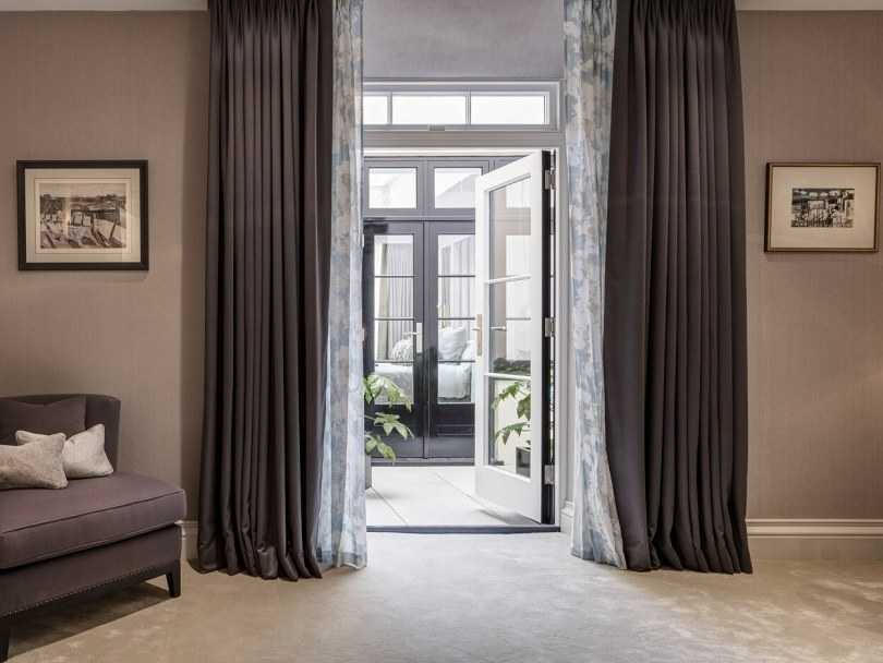 Как уже сказано выше, двери на террасу часто имеют очень большую площадь остекления. У некоторых только обрамление из древесины, металла или пластика, остальное — стекло. И не у всех оно зеркальное или тонированное. В этом случае, для сохранения приватности, стекло надо чем-то закрыть. Обычно это один из видов штор.