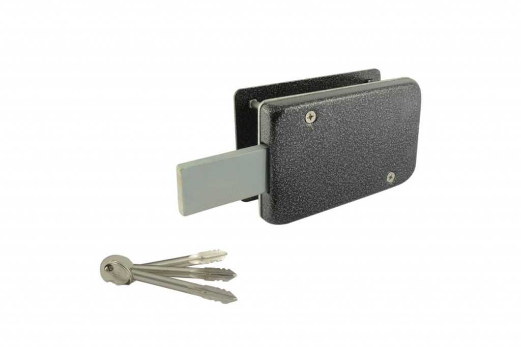 - с прямым ригелем — стандартный тип замка для распашных дверей;