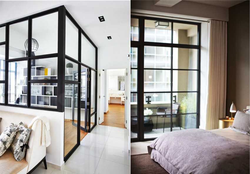 Современный мир диктует свои условия и материалы для таких перегородок стали более практичными и прочными. Сейчас все больше используют массив дерева, металл и даже ПВХ для каркаса, и матовое стекло или тонкий пластик для внутренних вставок.