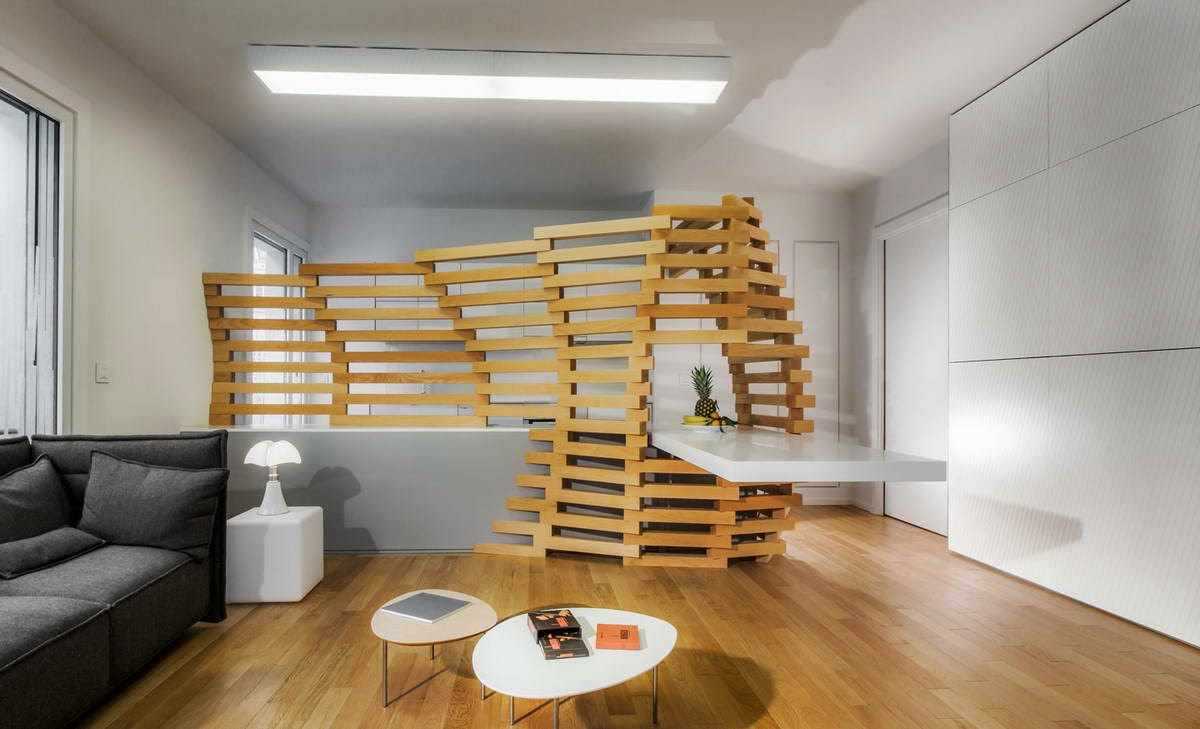 Эти конструкции также отлично подходят для зонирования пространства в квартирах-студиях. Они не просто удобно разделяют зоны для отдыха и работы, но и гармонично вписываются в общую стилистику помещения, поскольку в вопросах выбора цвета, стиля и сложности таких конструкций перед дизайнерами не стоят никакие ограничения.