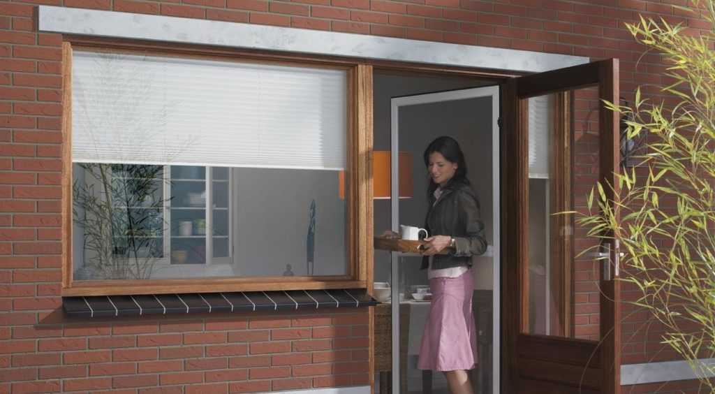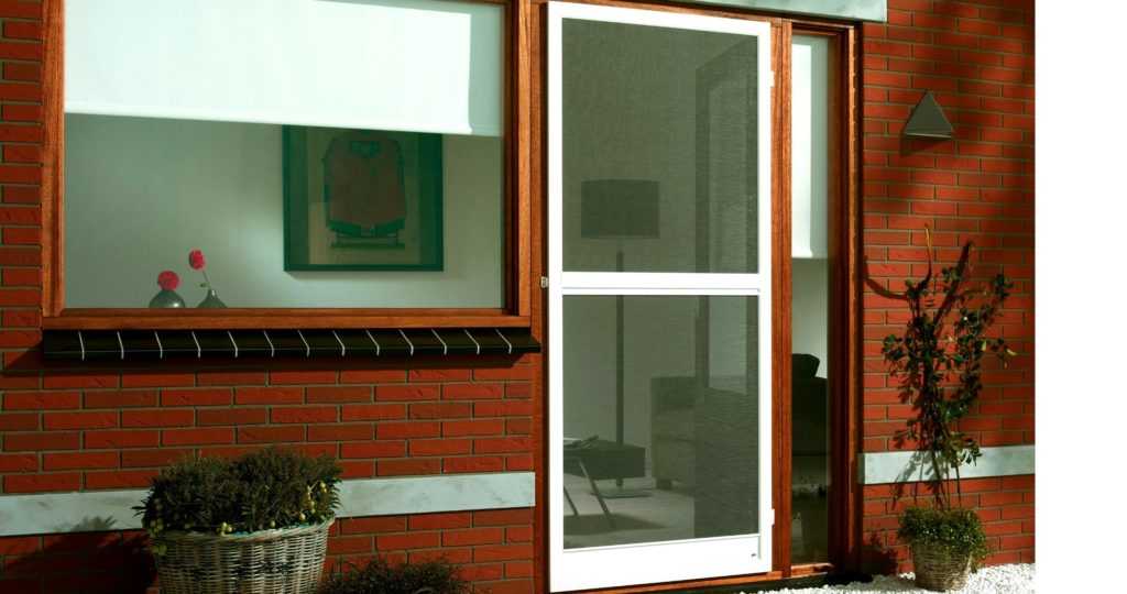 Самая простая система — распашная. Это рамки из алюминиевого профиля с натянутой на них антимоскитной сеткой, подвешенные на петли, по типу распашных дверей. Недостаток у такой конструкции такой же, как у дверей того же типа: для ее открытия необходимо свободное пространство.