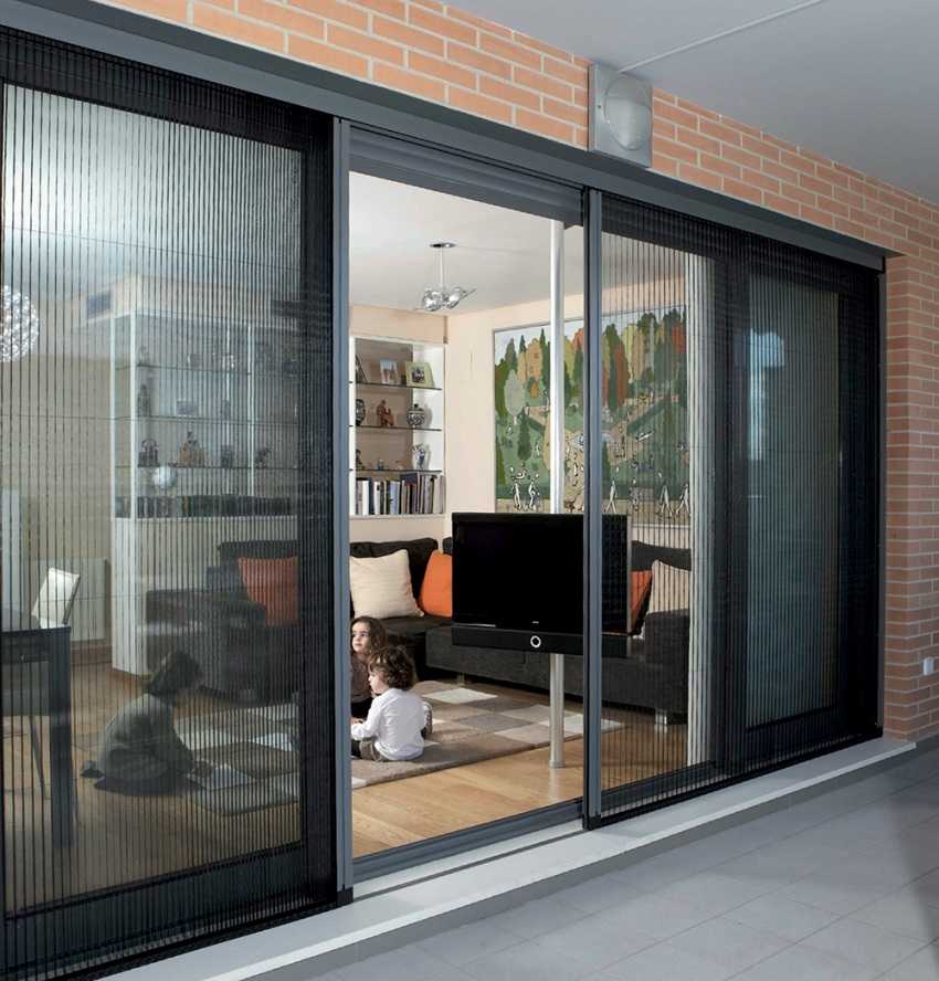 Раздвижные сетки производятся под раздвижные пластиковые окна и двери. Такие противомоскитки подобно створкам балкона, способны подстраиваться под положение каждой части. По принципу функционирования они напоминают шкаф-купе. Удачно подойдут для балконов или террас, а за счет того, что они оснащены уплотнительным ворсом, все щели по периметру каркаса перекрываются.