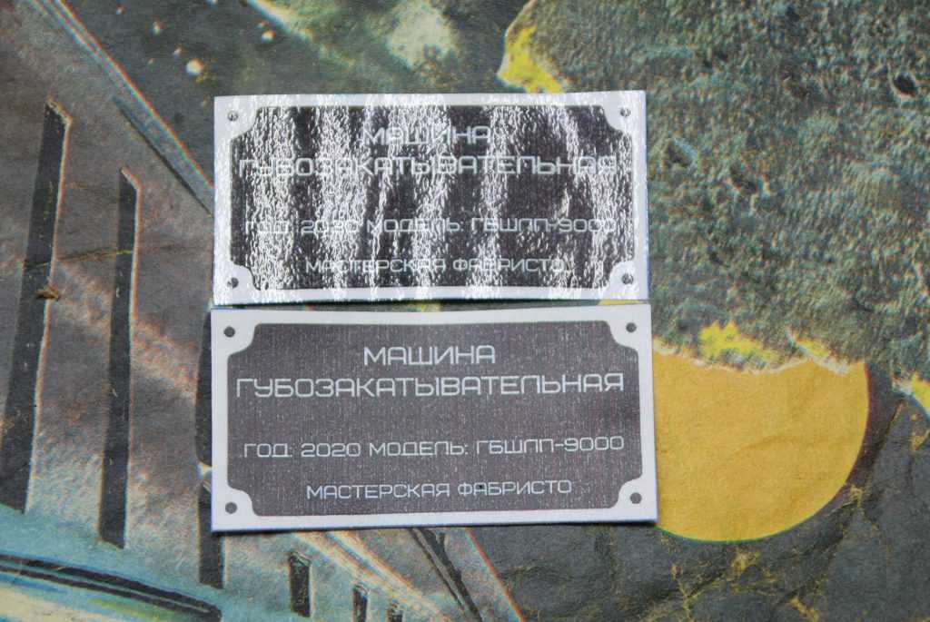 Опознаются такие таблички легко — ширина линий не меняется, а дно канавки имеет характерные для фрезы неровности. Обычно как при использовании копировально-гравировальных станков, так и станков с ЧПУ нанесение года и серийного номера не представляет сложности и делается также гравировкой. Оснастка для изготовления не требуется, так что цена такой таблички не сильно зависит от количества произведенных штук.