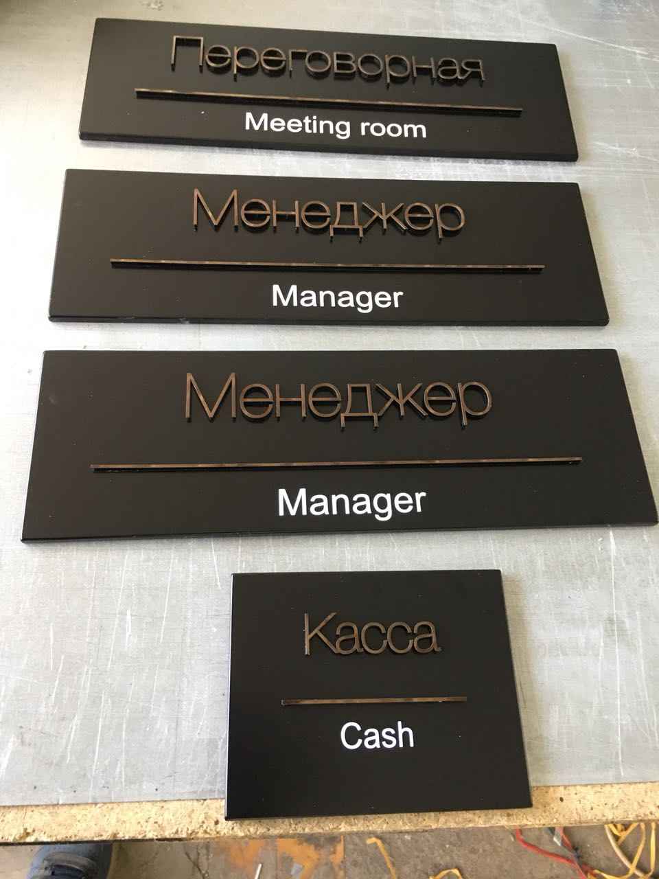Офисные таблички на дверь заводят знакомство с посетителем, который впервые может побывать в заведении, упрощают поиски необходимого кабинета, указывают нужное направление, то есть являются своеобразным молчаливым гидом по офисному зданию.