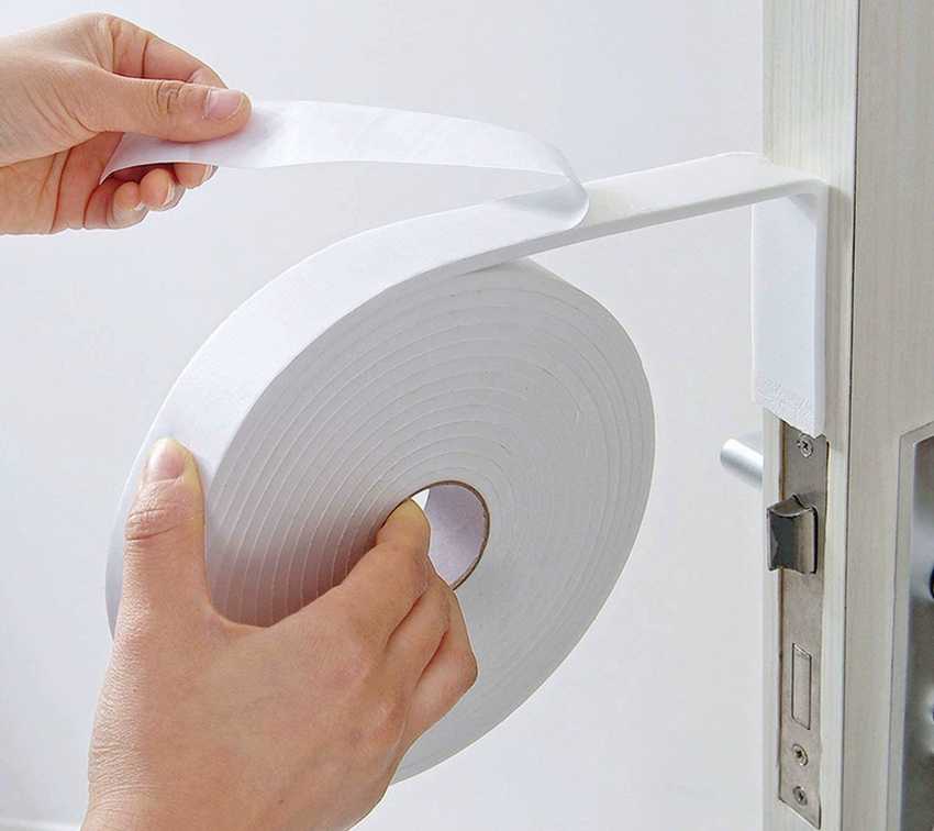 Самоклеящиеся поролоновые ленты подходят для устранения небольших щелей, образовавшихся между деревянным дверным полотном и коробкой