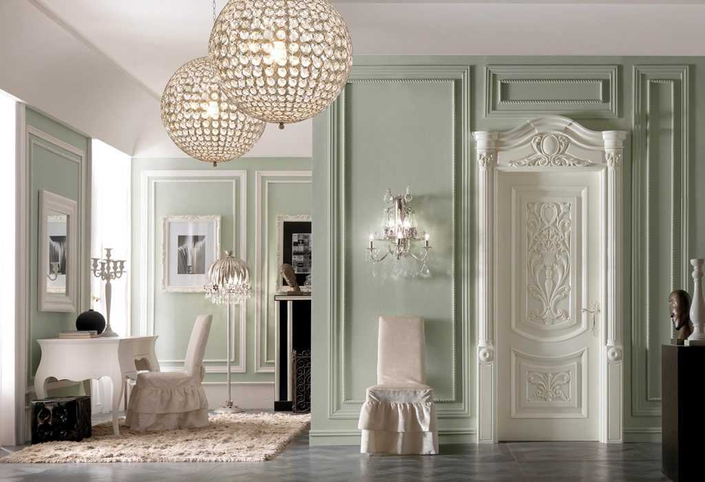 Классика. Для такого стиля характерно использование массивных дверей, покрытых морилкой. Чаще всего, поставщики предлагают изящные филёнчатые конструкции с пастельными оттенками лакокрасочных покрытий.